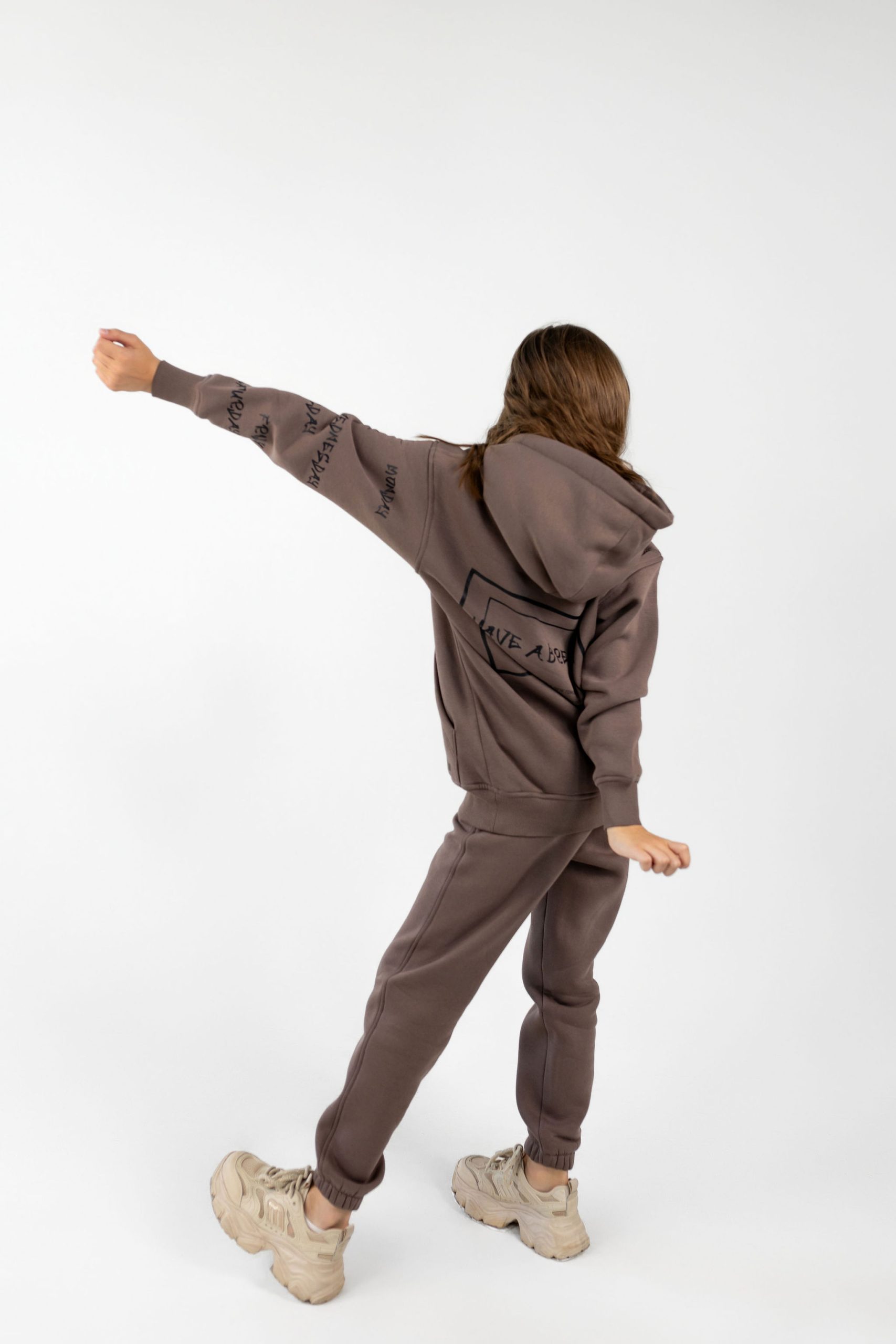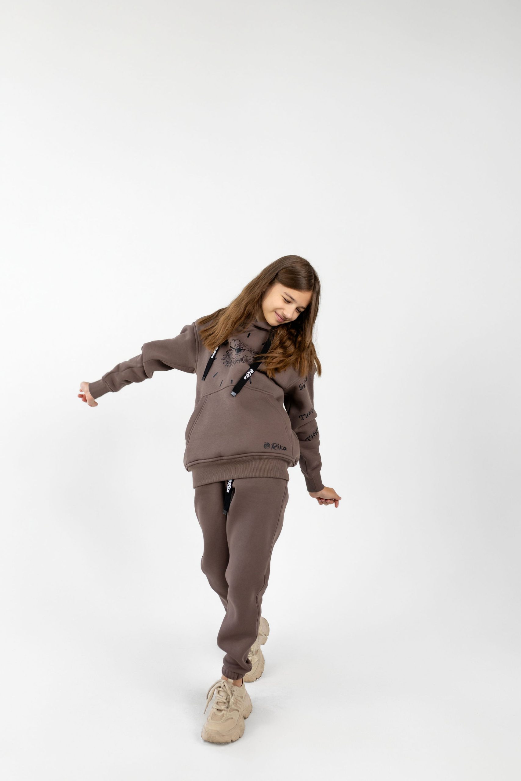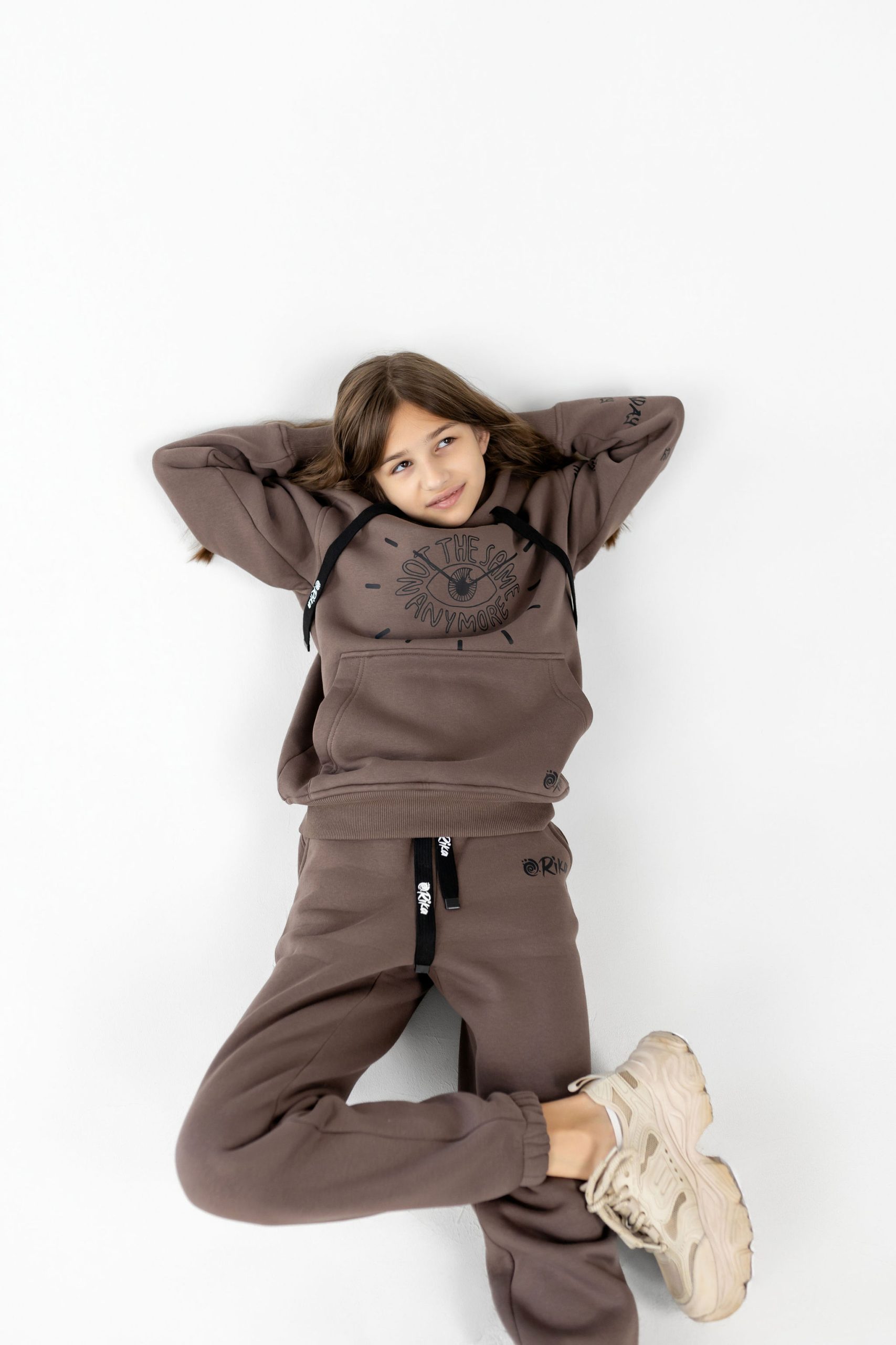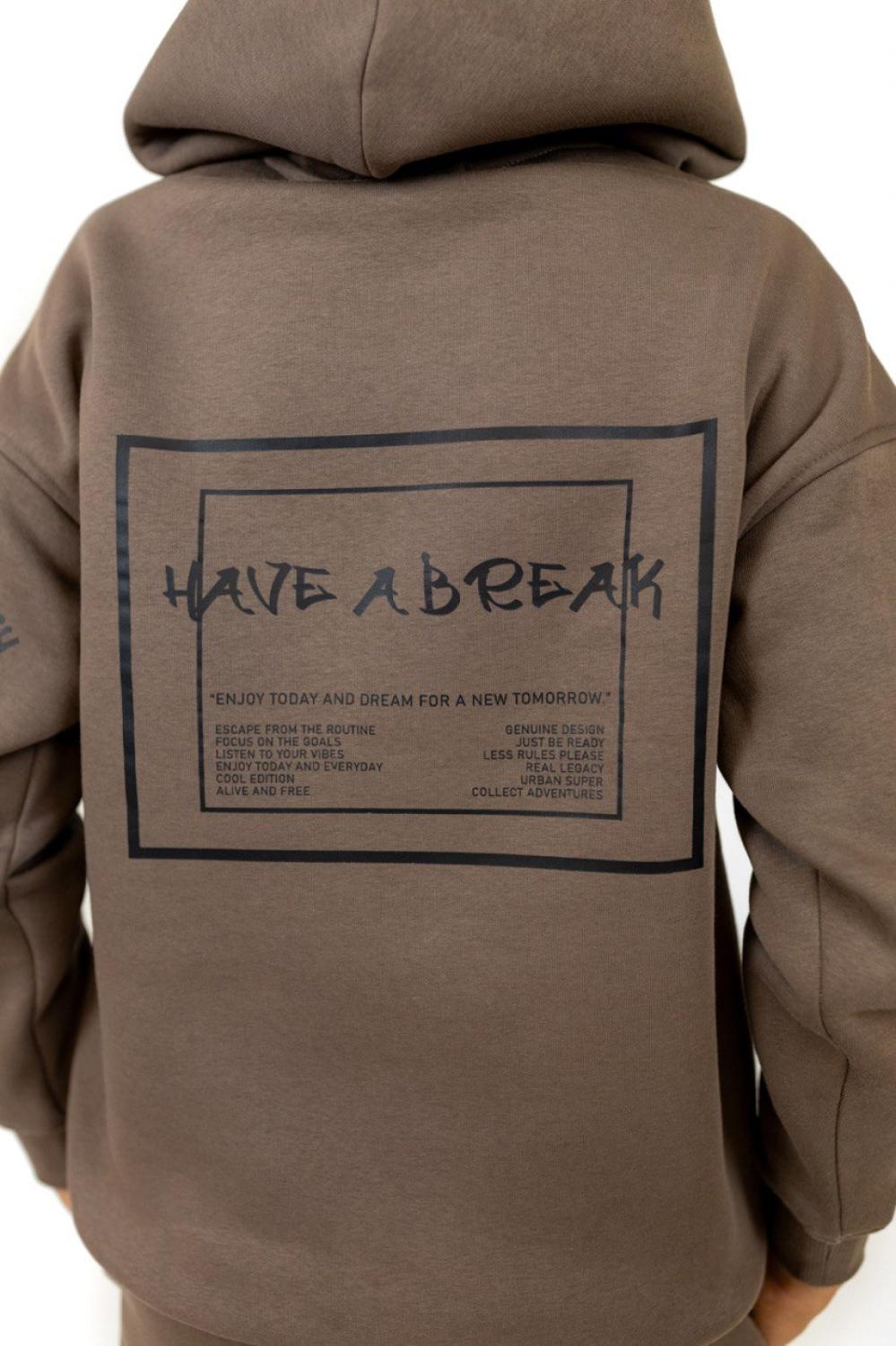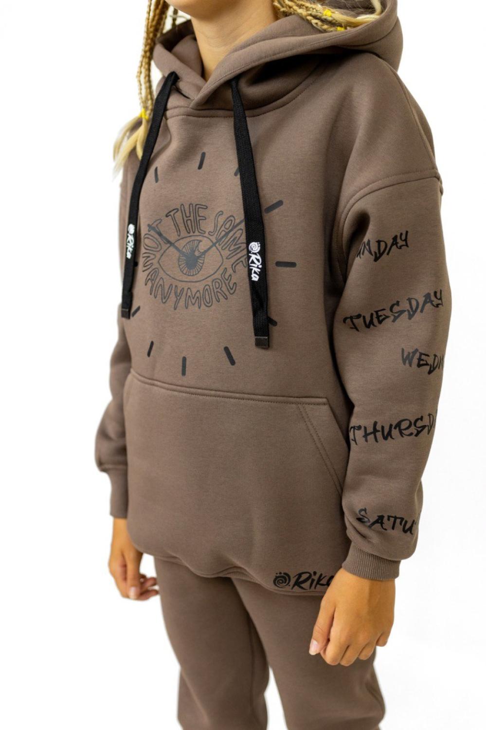 Ідеальний вибір для комфорту та щоденного стилю. Худі з кишенею-кенгуру та зручні штани на резинці зі шнурками забезпечують свободу рухів, а дві місткі кишені додають зручності у повсякденному використанні. Дарує тепло й приємні відчуття до тіла, не втрачає форму після прання. Практичний, стильний та комфортний комплект на кожен день у трендовому кольорі мокко з принтом.