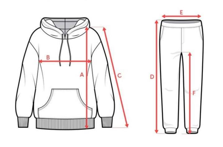 | Розмір | Груди, см (A) | Талія, см (B) | Стегна, см (C) |